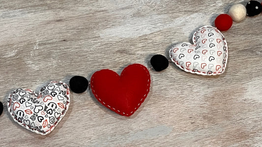 Red, White, Black Hearts with Poms