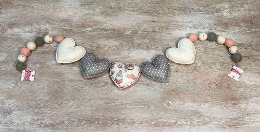 Sold outGray & Pink Hearts with Poms