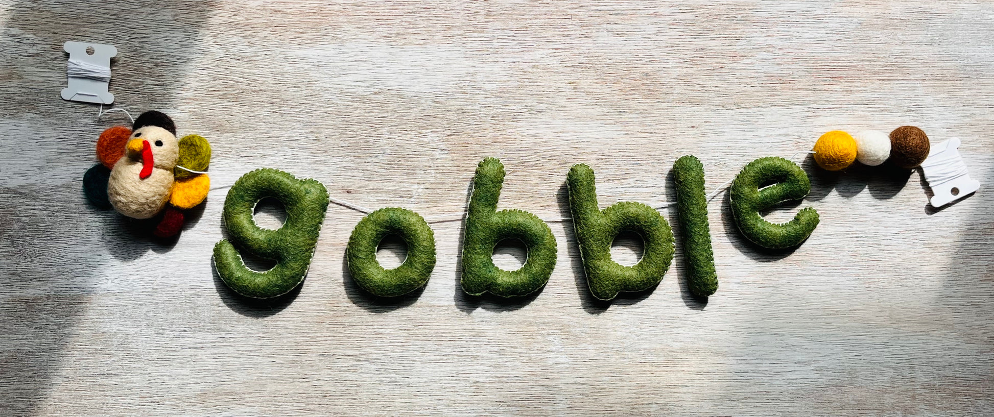 This super cute felted Turkey (appx 3" tall) with lower case letters
